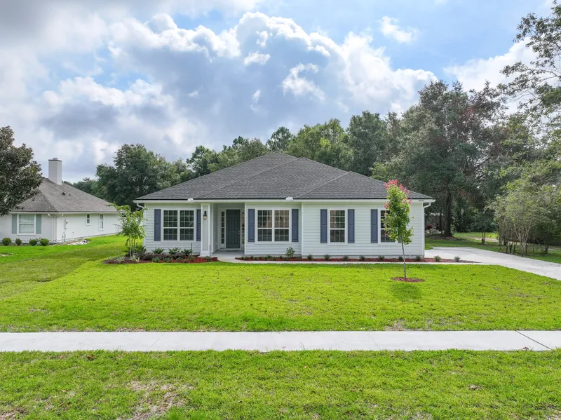 Welcome to this stunning new construction home, situated on over half an acre in a serene neighborhood that welcomes boats and RVs. This move-in-ready, single-story home is bathed in natural light from numerous windows. It showcases an open-concept design with a spacious eat-in kitchen, a generous living room, and a dining area. Even with abundant light, the large lot and ample spacing between homes ensure privacy. As you arrive, you're greeted by a beautifully manicured yard, leading either to the grand foyer through the front door or to the walk-in mudroom and laundry room via the side-entry two-car garage. The expansive owner's suite, complete with double closets, a water closet, and a walk-in shower, offers tranquil views of the private backyard. The covered back patio, accessible through tall glass doors off the living room and kitchen, is perfect for entertaining, seamlessly extending the open-concept space. This home offers the best of both worldsa brand new build in a picturesque, shaded setting, with mature trees left intentionally in the backyard for a peaceful retreat. Its the perfect place to call home, offering low-maintenance living in a prime location. Close to Target, Publix, top-rated schools, and I-95, you're also just minutes from Amelia Islandrecently crowned the best island in the U.S. by Global Traveler Magazineand Fernandina Beach, named one of the top 20 friendliest cities in the South by Southern Living. Plus, youre just a quick 30-minute drive to Jacksonville International Airport and less than an hour from The Mayo Clinic, the #1 hospital in Florida according to U.S. News & World Report 2023-2024.