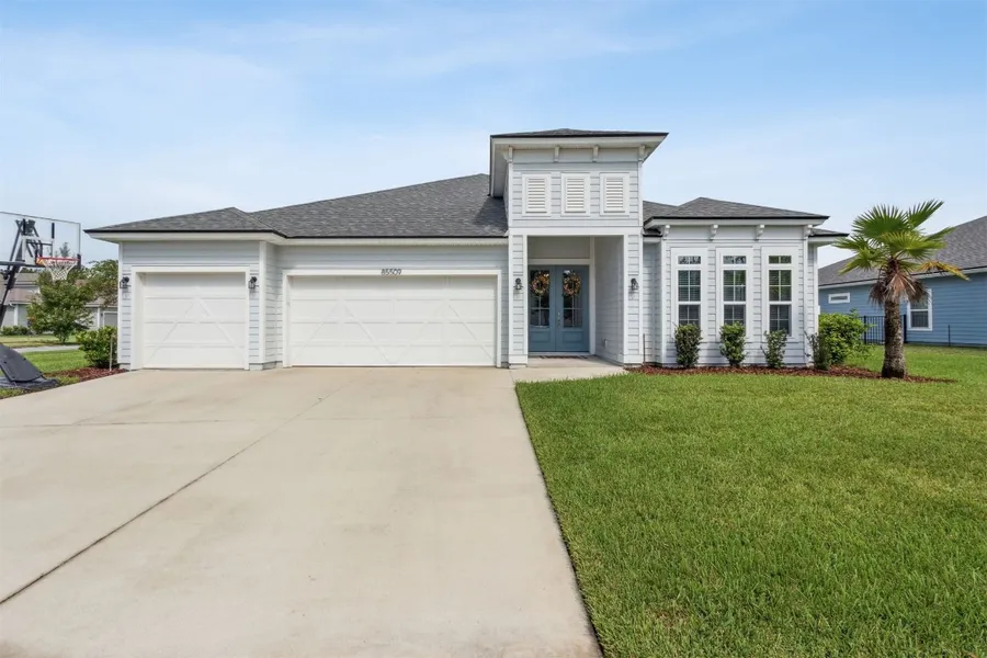 Welcome to this beautifully crafted 4-bedroom, 3-bath home located in the desirable Plummer Creek community. Built in 2019, this spacious 2,500 sq. ft. home boasts an inviting open floor plan that seamlessly connects the great room, dining area, and kitchen, perfect for modern living and entertaining. The gourmet kitchen is a chef's dream, featuring a large island, stunning quartz countertops, 42” upper cabinets, double oven and ample cabinet and counter space, complete with a cozy breakfast nook. Designed for privacy, the split bedroom layout offers laminate flooring throughout the living areas and plush carpeting in the bedrooms. The luxurious master suite is a true retreat, with French doors, his-and-her closets, a walk-in shower, a separate soaking tub, and dual vanities. Situated on a corner lot, the fully fenced backyard provides privacy and security, with a screened and covered patio ideal for outdoor relaxation. You will love the amenities in this community including large pool, playground and kayak launch site. Conveniently located near I-95, this home offers quick access to both Jacksonville and Georgia, and is just a 25-minute drive from the stunning beaches of Amelia Island. Don't miss your chance to own this charming home in a prime location!
