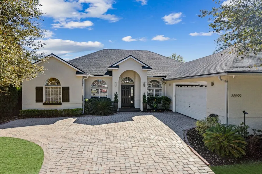 Nestled at the end of a private cul-de-sac, this exceptional home offers NEARLY THREE ACRES of tranquility, overlooking a serene pond and surrounded by 500+ acres of maritime forest and marsh. Well-maintained, it comes with NEW A/C (2024) AND ROOF (2023), along with premium upgrades like Hardie board siding, a paver driveway, and oversized windows throughout that seamlessly blend indoor and outdoor living. Inside, the OPEN-CONCEPT DESIGN enhances light and flow, while sophisticated finishes—like textured grasscloth wall paper, shiplap, and artistic accent walls—add depth and character. Walnut-hued plank flooring throughout—NO CARPET!—adds warmth and elegance. Premium features abound: enjoy 10-foot ceilings, a FIREPLACE-adorned family room and a coastal-inspired kitchen, impressive with Calacatta white QUARTZ countertops and Shaker-style white cabinetry, all oriented toward mesmerizing pond views. The master suite is a true retreat, with panoramic views of the pond and a spacious spa-like bath (all baths feature quartz vanities). The expansive backyard and pond is the show stopper though. The LARGE COVERED DECK is the perfect spot to enjoy morning coffee or a sunset cookout, offering a front-row seat to nature's breathtaking beauty. The stocked pond is clean of invasive weeds and offers fantastic fishing and incredible bird watching! Best of all, the pond has a drainage feature keeping the water level consistent, so no flood insurance is required. With large side yards offering space for a pool, the possibilities are endless. Just five minutes from top-rated schools and a short drive to Amelia Island's award-winning beaches and charming historic downtown, this home offers the perfect blend of seclusion and convenience.