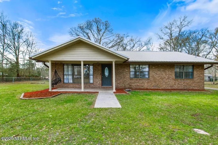 Charming and well-maintained farmhouse featuring 3 bedrooms and 2 bathrooms, nestled on over 2 acres of land with stunning oak trees throughout. Set back from the road, this peaceful property offers both privacy and natural beauty. Upon entering, you'll be greeted by wood-tile flooring that flows throughout the home, complementing the farmhouse-style kitchen. Step out the backdoor onto a spacious, covered, and gated porch that overlooks a vast backyard perfect for relaxation and outdoor activities. The property also boasts a large 36x54 barn with 100 amp service, providing ample storage space for your outdoor toys, RV, or boat. Behind the barn, you'll find additional fenced land offering even more privacy and room for your needs. Conveniently located near parks, schools, and a grocery store. Don't miss the opportunity to see this property schedule a showing today.