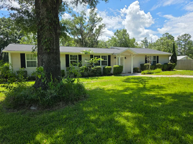 Welcome Home to this a delightful residence nestled in the heart of Callahan. This home offers a perfect blend of comfort and convenience, situated on a generous 1.41 acre lot. The Main Home has 1816 sq ft under roof including 3 Bedrooms, a Very Large Great/Living Room, separate Dining Room, oversized entry way, 2 additional rooms off the back of the home that may could be used as 4th or 5th Bedrooms. The Laundry Room also includes a Washer and Dryer. The AC is approx. 5 yrs old and a new bladder tank was just installed for the well pump. Home has tile floors throughout with the exception of carpet in the Great Room area. The 422 sq ft Garage is heated and cooled and with 1010 additional sq ftg including a large Laundry Room complete with an additional Washer and Dryer Set. There are also multiple rooms attached to the garage building to use for storage, such as office/flex space/Gym area (Home Gym included), an additional Kitchen and so much more!! The property is zoned RM potentially allowing for the property to be split and a 2nd home built which offers a potential multigenerational opportunity. Don't miss your chance to own this unique home and property!! Schedule your showing today!