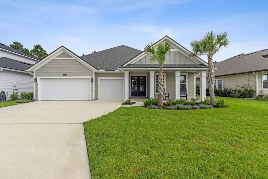 Welcome to Tributary! Step inside the desirable Dream Finders Homes - Avalon plan which includes 4 bedrooms and 3 bathrooms. Endless upgrades in the home including LVP in the main living areas, extended cabinetry in the kitchen/cafe, quartz countertops in kitchen and bathrooms, bay windows in the master and 1 guest bedroom, surround sound in living and patio, and custom closets throughout. The spacious open-concept layout is perfect for entertaining, and a split-bedroom design offering privacy and comfort for you and your guests. The chef-inspired kitchen features quartz countertops, stainless steel appliances, large shiplap island, gas stove top, double oven, soft close cabinets, and a custom vented hood. The master suite includes a double-sink vanity, an extended walk-in shower, and a large walk-in closet. 3 car garage with ample storage, utility sink, workspace, and garage door screen. Solar panels are paid off and lower your electric bill significantly! Screened-in lanai overlooking the preserve with surround sound and plumbed for an outdoor kitchen. As part of the Tributary community, you'll have access to a state-of-the-art amenity center featuring a clubhouse, gorgeous community pool, fitness center, and sports courts. Plus, you're just minutes from Publix, I-95, Jacksonville International Airport, and River City Marketplace. The community also offers a dog park and playground for your little ones and furry friends!