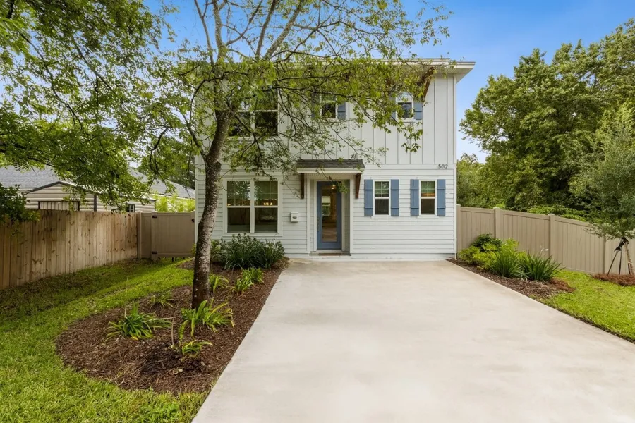 Built in 2024 by Artisan Home Builders, this stylish 2 bedroom, 2.5 bath home offers modern living just steps from the shops and restaurants of historic downtown. Upstairs, you'll find both bedrooms with plush carpeting, modern finishes, and thoughtfully designed details including tile bathrooms and custom full-length mirrors on each closet and bathroom door. The upstairs layout provides privacy and comfort with two full bathrooms. Downstairs, the open-concept kitchen, dining, and living area is perfect for entertaining. The kitchen boasts wood shaker cabinets, stainless steel appliances, an island for gathering, and a large walk-in pantry with additional storage under the stairs. Vinyl plank flooring runs throughout the main level, complemented by a convenient half bath and electronic blinds on the front and back sliding door. Step outside to a covered patio and fully fenced yard that backs up to a peaceful conservation land to ensure privacy- ideal for relaxing or entertaining outdoors. The front of the home is fenced with wood-look vinyl and the rear of the home has black aluminum fencing. This brand-new home combines modern design, walkable convenience, and a prime location in the heart of Fernandina Beach.