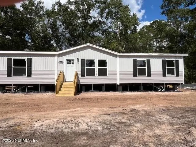 This is a Brand New MFH with so many upgrades on a large 1.35 acre lot. The home has big GR with entertainment wall open to kitchen & DR. Kitchen has big island to eat at plus nice coffee nook. Tons of cabinets & upgraded stainless appliances with side by side refrigerator. The Master suite is on one end for privacy & has double vanities & a big tub shower combo with two walk in closets. The other two BRs share a bath on the other end & home has an extra large laundry area with room for freezer or extra storage & door out end of home to a very spacious yard with room for animals, garden or just lots of activities. Home comes with a 1 year warranty from time of closing, Very private but just a few minutes to town & about 10 minutes to I 95.