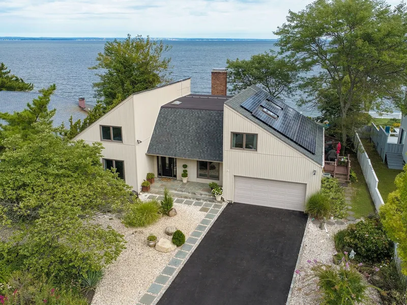 Experience living on the water in this spacious Contemporary situated in the prestigious Harrison Woods community. This home boasts a sun filled layout and water views from many of its rooms. An entertainer's delight, with its large Trex deck, multi level patios and a hot tub. Private steps lead to a beach perfect for swimming, sunning, fishing or launching a kayak. Also featured is a first floor master suite, solar panels, stainless steel appliances & granite countertops. HOA dues-450.00.