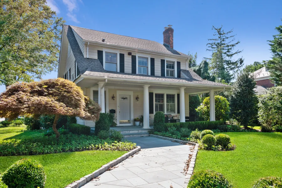 Picture yourself in this charming colonial in the best of locations! The welcoming porch leads you to a beautifully done home. Features include 3 full baths (master bath brand new) 2 half baths, renovated kitchen w/high end appliances, Finished Basement, Gas Heat, a deck fully covered by awning for entertaining, large private driveway and new garage, new pavers and walkways, all new landscaping, CAC, IGS, Central Station Alarm. Near to LIRR.