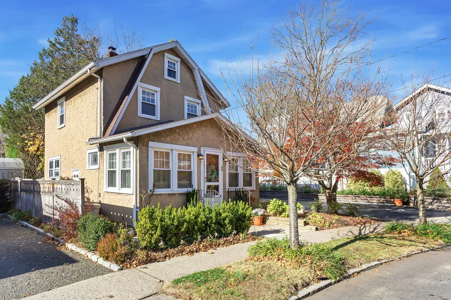 Delightful and light-filled Port Washington Colonial wonderfully located in the town center and short distance to the LIRR. Enter this happy home to a window-lined sunroom, perfect for a home office or just to relax. Through gorgeous leaded glass French doors you will find a comfortable formal living room, which opens to a formal dining room. The updated kitchen is lovely with lighted glass cabinetry and gas cooking. Cute powder room and side exterior entrance. Upstairs there are 2 bright large bedrooms, with generous closets and a full bath. Unfinished basement with laundry & storage. Ample parking and detached garage. The private yard is an oasis, and the beautiful plantings line the property.