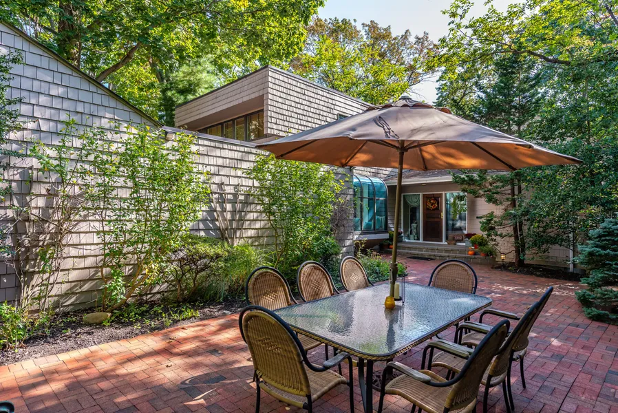 Beautifully designed home nestled on 1/3 acre of private wooded property with a charming brick courtyard that welcomes you before entering the home. Home features 5 bedrooms, 3.5 baths and offers 3,200 square feet of easy living space. A wooden wrap-around porch, perfect for entertaining, is the backdrop to the dining room, living room with fireplace, and den with fireplace. Chef's kitchen with top of the line appliances and master bedroom with oversized bath offers many amenities. Basement offers a large additional bedroom, full bath, large playroom, storage room, and either an extra bedroom or gym. Many more aspects to this house that create the whole package! Beach and mooring rights, close to town and train.