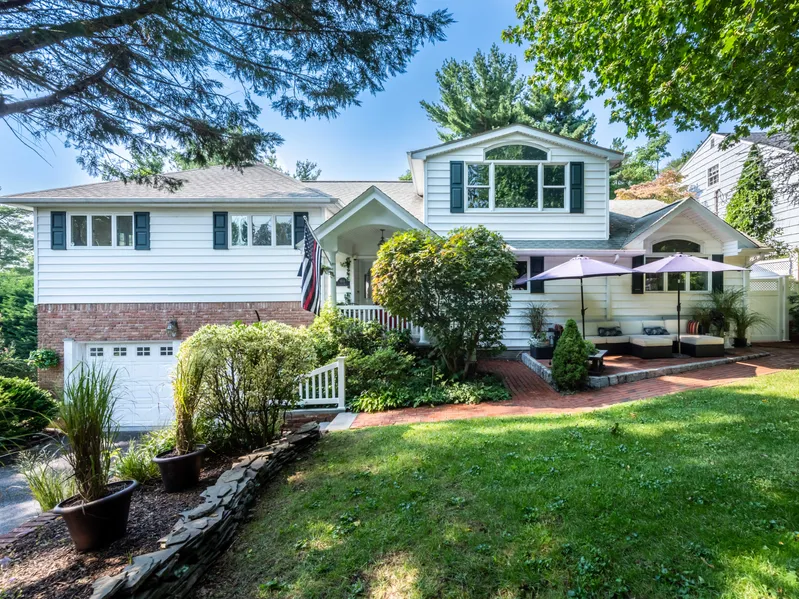 Summer is Calling! This 4-bedroom, 3.5-bath home features an open concept floor plan with a fluid living space between the oversized kitchen with vaulted ceiling, family room, living room with fireplace, and dining room. Sundrenched lower level, with powder room, opens to heated gunite pool, hot tub and fire pit. The brick patio and multiple seating spaces add the perfect venue for gatherings and parties. Basement, oversized 2-car garage with tons of storage and built-ins, CAC, gas heat & cooking. Manhasset Bay Estates beach and mooring available with fee.