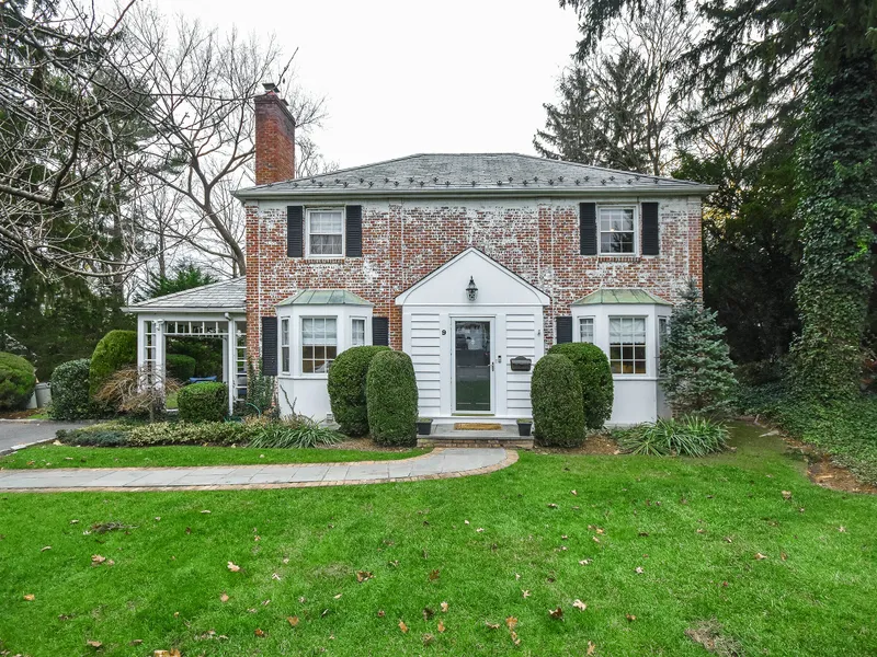 Classic brick 3 bedroom, 2.5 bath center hall Colonial in move in condition is sited on a 80 x 100 property and exudes the warmth of home and hearth. A gorgeous newly done living room with stone fireplace, and formal dining room, anchors the home. The well sized eat in kitchen has stainless steel appliances and leads to a den/office with easy access through French doors to a lovely deck and yard. Upstairs there are 3 well sized bedrooms, a Master with walk-in closet and updated bath, and 2 more bedrooms, and hall bath. Full basement with laundry room. New CAC, new sprinkler system, hardwood floors throughout, 3 zone heat with radiant in kitchen, charming side porch, all closets have been outfitted, 3 zone heating, gas cooking, shed, LED high hats throughout, slate roof.