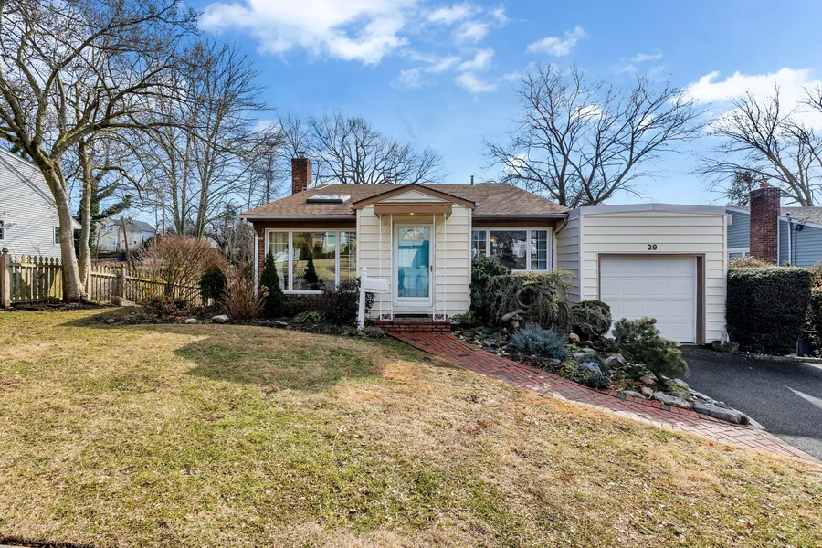 Bright Split Level home on quiet Salem street. Gracious light filled principle rooms with soaring ceilings and skylights. The cozy entry foyer leads to wonderfully oversized formal living room and formal dining room. Eat-in-kitchen with ample storage and access to deck. 3 spacious bedrooms and 1 full bath on upper level. Lower level recreation boasts an additional bedroom/home office, full bath and access to great deep yard with town easement that leads to the Plandome train station. Additional unfinished basement with storage laundry and mechanicals. Solar panels, attached garage, central air and more.