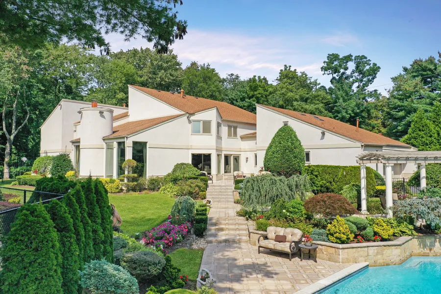 Welcome to your oasis of privacy as you enter through the iron gates to over 7000 sq.ft. of elegance which rests beautifully on a stunning 2.04 acre setting. This striking 6 bedroom, 6.5 bath home has been completely renovated in 2010 with Pella windows and radiant heated floors. The soaring ceilings, tall windows, and modern design work together to create a bright and open interior. Each room flows gracefully into the next with exquisitely detailed marble and onyx throughout. Main level primary bedroom complete with two outfitted walk-in closets and elegant master bath. Kitchen boosts Italian lacquer cabinetry, Miele appliances, Sub-Zero refrigerators. Relax in your own private home theater. Grand size dining room, living room with dramatic marble and onyx fireplace. Upper level complete with 3 additional en-suite bedrooms and gym with sauna. Entertain your guests on the flamed granite ...