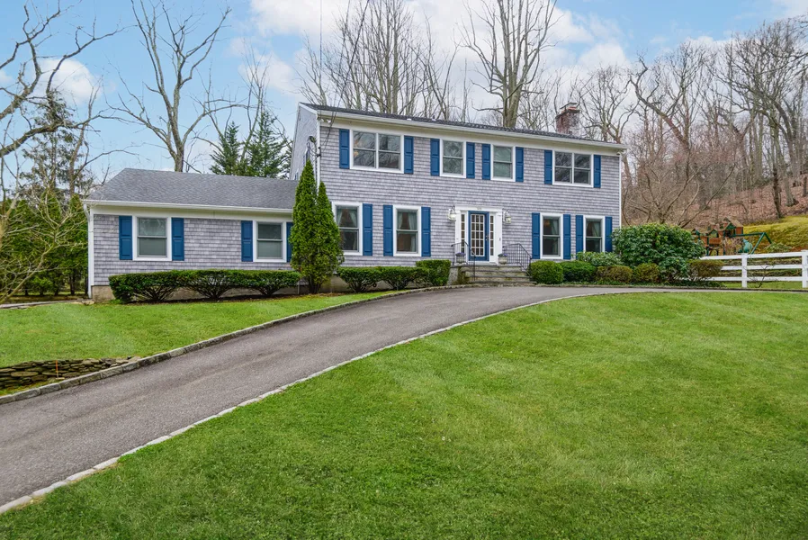Built in 1961, this beautiful 5 bedroom Colonial has been updated for today's living. Situated on 2.16-acres, this home features formal living & dining rooms overlooking front gardens, large family room w/ fireplace & fabulous chef's kitchen w/ white Brookhaven cabinetry, quartzite countertops & top-of-the-line appliances. The kitchen expands into an informal dining room w/ two skylights, walls of windows, a breakfast bar & a built-in banquette. A butler's pantry leads to dining room, & a bedroom w/ an en suite is arranged as an office. The second level has a spacious primary suite w/ a fireplace & a spa-inspired en suite bath. Three additional bedrooms & an updated bath on this level. Lower level has open space for recreation, cedar closet & laundry room. New Polymer CertainTeed Cedar Impressions siding. Generator services 90% of the house. Attached two-car garage wired for electronic v...