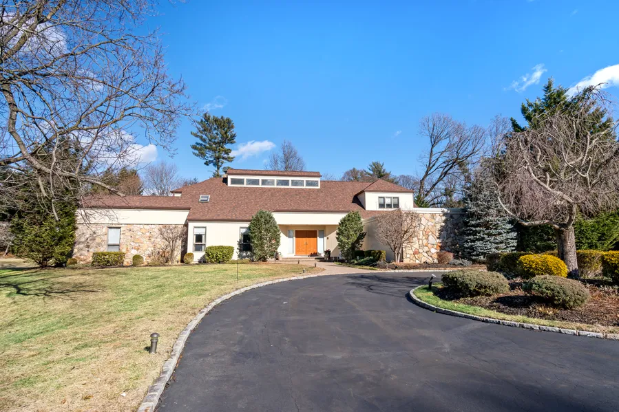This beautifully gated renovated contemporary home resonates with clarity and light as each and every window takes in the entire expanse of the landscaped. It features a modern design with soaring ceilings, an open floor plan, granite countertops, marble flooring, and a wood burning fireplace. The spacious living room provides an inviting space for entertaining, enhanced by the warmth of the stone fireplace. For cozy winter nights, a more intimate den offers comfort and relaxation. The renovated kitchen boasts top appliances, a center island and breakfast nook. There's also a separate bedroom perfectly suited for long term guests or as a home office. The generous primary suite is on the main level and offers offers a dressing room, fitted closets and a luxurious bathroom complete with a tub, shower and two sinks. All of this is set on two beautifully landscaped acres. Recently ...