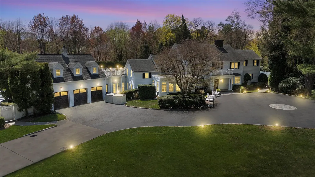 At the end of a long private driveway the exceedingly charming Georgian Colonial aptly styled “Twin Pines” awaits. Quiet luxury and classic architecture strikes a harmonious balance with resort-style amenities set amongst 2 lush acres, providing an exceptional lifestyle for the discerning buyer. Step inside the entrance to find a foyer with original palazzo tile and library with a wood-burning fireplace and a full Creme de Marfil marble topped bar. An expansive living room with custom built-ins, original millwork, and another wood-burning fireplace leads you into a gourmet kitchen; a Chef’s dream composed of Olympian white honed marble countertops, top-of-the-line appliances, including a Subzero, 6-burner Wolf range, two dishwashers and 2 ovens with a generous center island complete with prep sink for entertaining. Down the hall, you'll find the first of 3 laundry rooms with additional subzero refrigerator as well as an All-Seasons room with flush doors opening to your outdoor terrace. The sparkling heated salt-water gunite pool with hot tub, surrounded by recently installed Italian marble pavers and shaded by specimen trees is an entertainer's delight and provides a stunning backdrop for hosting gatherings.