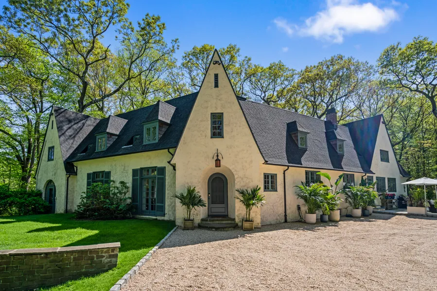 Set atop a gentle rise in a storybook woodland setting, this extraordinary estate originally built in 1926 for Mary Scott Harrison, daughter of the 23rd President of the United States, Benjamin Harrison, and granddaughter of the 9th President William Henry Harrison. A rare offering steeped in American History, the home blends architectural charm, refined design, and modern luxury across expansive, beautifully landscaped grounds. Behind its striking steep-gabled facade and original stucco exterior lies an impeccably renovated interior that honors its heritage while embracing contemporary elegance. The gracious entry hall with checkerboard marble flooring and a sweep staircase leads to a series of stunning rooms, including a grand fireside living room, a richly paneled dining room with bold wallpaper and fireplace, and a sun-filled sitting room with arched windows overlooking lush gardens. The kitchen is a vibrant, designer showpiece with custom cabinetry, a large center island, and color tilework. A dramatic vaulted office space nestles beneath the home's distinctive roofline- an inspiring retreat with treetop views. Outside, enjoy elegant terraces, curated gardens, and multiple lounging and dining areas perfect for entertaining. This is a once-in-a-lifetime opportunity to own a residence with an unparalleled historical pedigree and timeless beauty! Thoughtfully modernized, this residence boasts a full-house generator, commercial grade wi-fi, heated floors in two bathrooms and an outdoor saltwater hotter. Updates include all-new bathrooms, a primary suite with jacuzzi tub, jack-and-jill bath, and a new washer/dryer. New windows and a redone tennis court. Exterior upgrades feature ann-new bluestone patios, an updated irrigation system, new outdoor lighting, fido-fencing for dogs, and a fortified retaining wall with Belgium block along the driveway. Additional highlights include buried utilities, a heated garage, two EV chargers (garage + driveway) and updated electric panels.