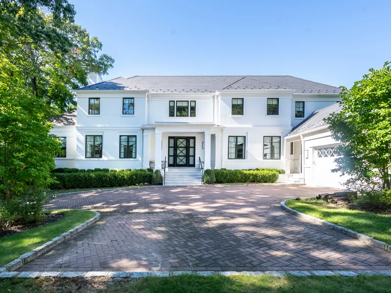 French Modern residence, built in 2018, seamlessly blends contemporary luxury with timeless design. Perched on a prime setting and offering over 7,000 square feet of refined living, the home presents a stately facade with a columned portico, dramatic windows, and iron-framed glass doors that open to a museum-inspired foyer with marble floors and art niches. The main level is designed with comfort, elegance, and entertaining, featuring spacious living and dining rooms, a bright private study, powder room, library with custom built-ins, and a guest suite with en-suite bath. The inviting family room extends through French doors to the terrace and heated pool, creating seamless indoor-outdoor living. Additional highlights include an extra half bath, back staircases, and an attached garage. High, uniquely styled tray ceilings, intricate moldings, and pocket doors enhance the home’s flow and a...