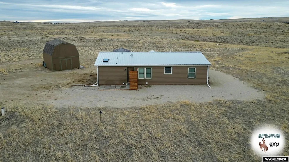 Home on the Range in Evansville, Wyoming! Bring your horses and embrace wide open living on nearly 20 acres of beautiful Wyoming land. This fully remodeled 3-bedroom, 2-bath home offers over 1,200 sq. ft. of thoughtfully updated space ready for you to move right in and enjoy. The entertainer s kitchen is a true highlight, featuring a custom tile backsplash, stainless steel farmhouse sink, and stunning appliances. The open floor plan flows seamlessly into the living and dining areas, making it perfect for gatherings and everyday living. The master suite includes a beautifully tiled shower lit by a skylight for a touch of luxury. Step out onto the back deck and take in expansive views of your land and the mountains beyond ideal for morning coffee or watching the sunset. Additional highlights include a durable metal roof, updated siding, and a massive powered shed with a loft for storage, hobbies, or a workshop. With sheetrock walls throughout and quality finishes, this home combines rustic charm with modern convenience. Don t miss your chance to go country and create the lifestyle you ve been dreaming of!