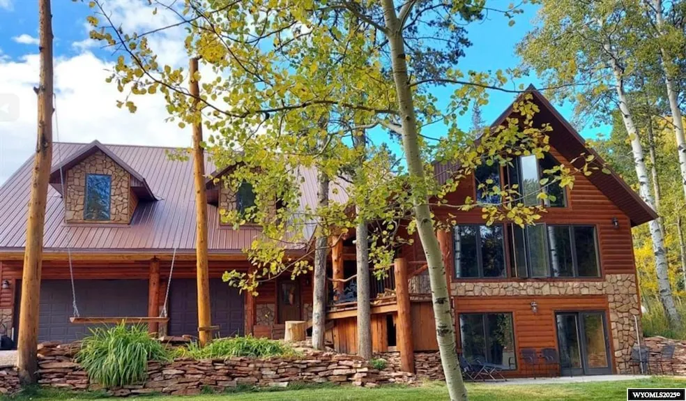 Discover unparalleled craftsmanship in this one-of-a-kind 2-story, stick-built mountain home, displaying a stunning log and stone exterior on 2.02 acres. This exquisite property features 6 spacious bedrooms and 4 3/4 bathrooms, all constructed from authentic Casper Mountain logs. The kitchen is a culinary dream with custom cabinets featuring convenient pullouts, elegant granite countertops, and a handy pot filler, all designed to enhance your cooking experience. Every chef will be thrilled to cook using the 6 burner professional range and oven. You will love the practicality and convenience of three laundry rooms, one on each level. The large mudroom is perfectly designed to store snow gear, making this home a true haven for outdoor enthusiasts. There is Living space galore, with three family rooms, providing plenty of room for relaxation and entertainment. The covered front porch adds a charming touch, inviting you to enjoy the serene mountain surroundings. An attached 3-car garage offers plenty of parking and two extensive storage spaces beyond the garage. A huge shop with an oversized doors, accommodates all your projects and extra storage needs. Additional storage solutions are provided by the included shed and c-can, ensuring that every need is catered to. Experience the pinnacle of mountain living in this one-of-a-kind home.