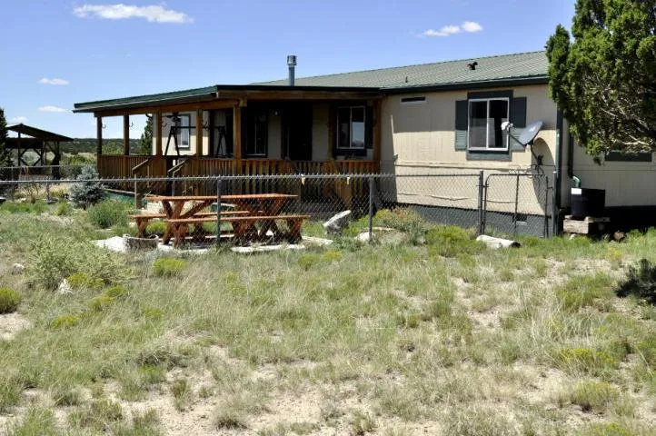 10 acre horse property, nicely set up, borders state land, and only 20 minutes to Show Low. Great views of the White Mountains. Property is fenced & cross fenced into three 3 ac pastures...all with gates. Dbl car garage converted into a 3 room work shop...easily converted back if desired. Off grid property set up to live sustainably, with 12K propane Kohler back up generator, 24 Volt solar system, private well & 1500 gal water holding tank, two 500 gal propane tanks...owned & tied together. Large, covered back deck to enjoy spectacular views from. Block stem wall and tied down. Barn with tack area and 3 stalls. Weather protected gazebo and more...must see how much property for the price.