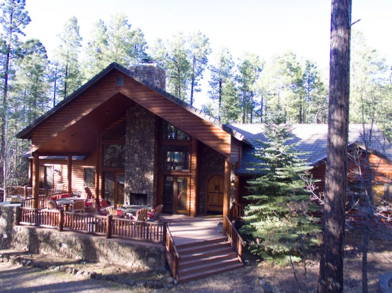 Incredible custom mountain cabin. 4BD, 3.5 BA Great room w/ soaring vaulted ceiling, wood interior through-out, gourmet kitchen w/ double ovens & granite, huge rock FP, gas FP in master. Master bath with separate shower and Jacuzzi tub. Wood floors in the main living areas, carpet in the bedrooms and travertine in the bath. Furnished except a few personal items. Covered decks front and back. 3 car garage. 40 YR concrete shingle roof. Club and rec center available with membership www.wmccpinetop.com WMSH