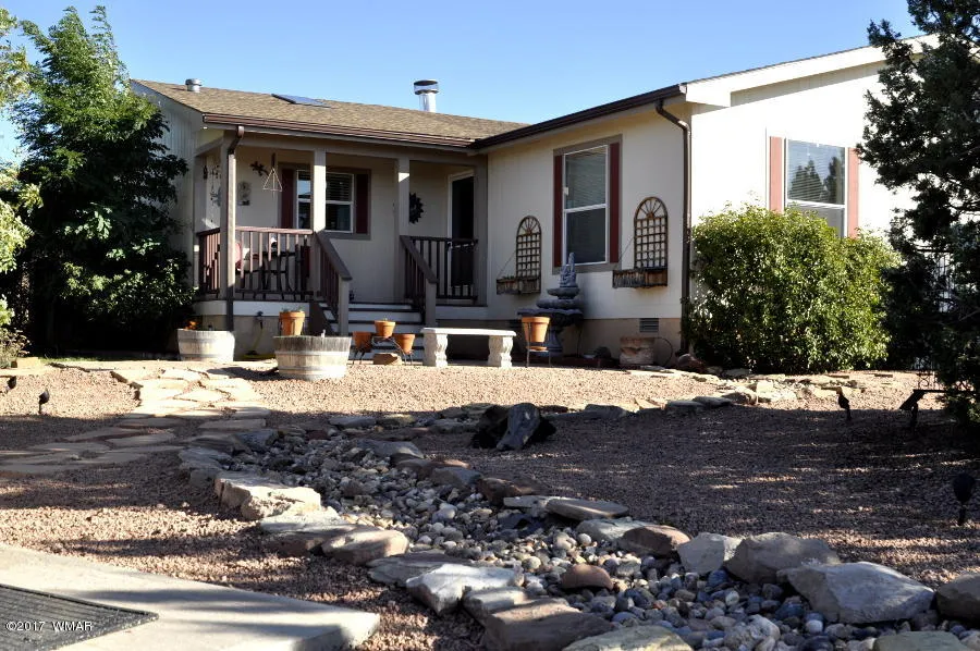 Pristine 3BD/2BA triple-wide, all electric home on 2.61 fenced/gated acres. Home in excellent condition. Lg open kitchen w/ample cabinetry. Double sided fireplace, woodstove & pellet stove keep home toasty warm in winter months, and 5 ton, central AC, keep it cool in summer. Much of homes interior, & some exterior painted in summer of 017. Large master w/huge walk-in closet, garden tub & shower. Skirting is block, some of that also stucco'd. Property nicely landscaped, including pretty little fenced in side yard & BBQ area. Attractive gazebo makes for great picnic/hangout area. Private well into the Coconino Aquifer provides abundant, good, water. Well house holds 100 gal pressure tank, with plenty of storage space, on top of two nice storage sheds (10x14 & 10x10). Commercial-Res zoning.