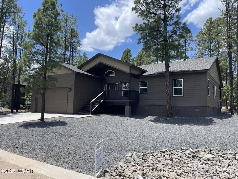 Beautiful new home with a two year builder warranty. Come see what could be yours in the starry skies of the tall pines in the White Mountains of Arizona. Home boasts vaulted ceiling lined with knotty alder, huge open floor plan, granite countertops, solid wood cabinetry, stone backsplash to the bottom of cabinets, laundry sink and cabinetry, spray foam insulation, 9' ceilings throughout, large covered back porch, heavy-duty 50 yr shingles, and hardscape landscaping for easy maintenance. Master bath features separate soaking tub and shower, separate toilet room, and large built-out closet. Listing agent is a principal of the seller LLC.