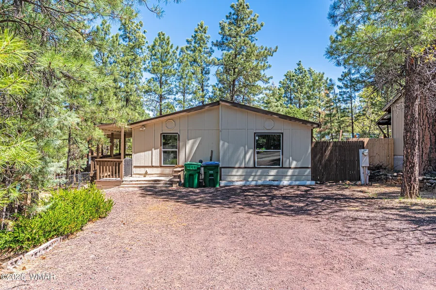 Nestled in the peaceful Park Valley subdivision of Show Low, Arizona, 3130 W Young offers a comfortable and convenient living experience. This 1,512 sq ft manufactured home, built in 1999, features 3 bedrooms and 2 bathrooms, making it ideal for families or those seeking extra space. The open floor plan includes a vaulted ceiling, split-bedroom layout. Functional Design: The kitchen and dining areas are combined, providing a central hub for daily activities. The home also boasts a utility room for laundry convenience. The home has new flooring, WH, paint inside and out. Comfortable Features: Natural gas heating with forced air ensures warmth during colder months. The home is equipped with both carpet and linoleum flooring, offering a mix of comfort and practicality. Outdoor Living: Enjoy the outdoors from the covered front and rear decks, perfect for relaxation or entertaining guests. Lot Details: Situated on a 0.16-acre lot with paved streets, the property offers a manageable yard with mature trees, enhancing the home's curb appeal.