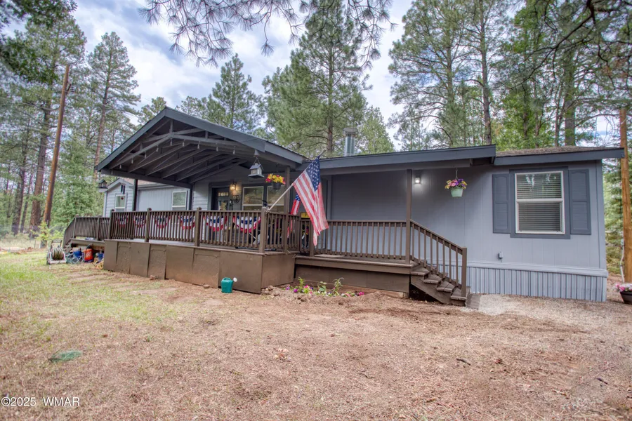 MOUNTAIN COMFORT MEETS SPACIOUS LIVING IN THIS MANUFACTURED HOME IN PINETOP COUNTRY CLUB MOBILES! This 4 bedroom, 2 bath home has a generous1904 sq. ft. of living space and has a great-for-entertaining floor plan that is ready to be yours! There are two fireplaces (one has never been used)-one in the large living area AND one in the large great room. It has a split bedroom floor plan with the Master Bedroom and Master Bath on one side of the home and the other three bedrooms and bathroom on the other side of the home which is great for privacy and functionality. The kitchen has updated appliances and an island for preparing foods or can be used as a breakfast bar. The Dining Area is between the kitchen and the great room... perfect for entertaining or everyday feasts! There is natural gas and electric heating and a portable air conditioner for those rare warm nights. There is a large covered deck and an open deck to sit and enjoy the beautiful trees and beautiful natural surroundings. There is an out-building/shed for storage and a huge area for gardening. Some Furniture and Furnishings Negotiable Outside of Escrow. This is a Must See, Must Own Home!