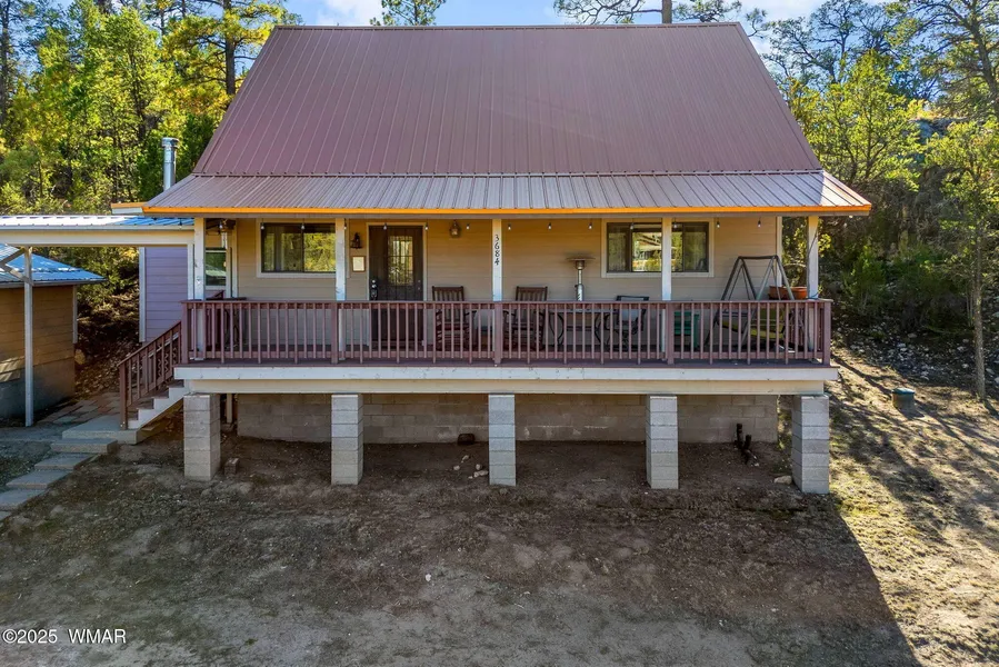 Mountain living at its best! You may go days without seeing another car on this secluded property, offering the peace and privacy you've been searching for. The home has been tastefully updated with luxury vinyl plank flooring, fresh paint, new fixtures throughout, updated cabinets, countertops, a metal roof & gutters. A large front covered deck overlooks the expansive front yard and welcomes you into the inviting living room, featuring a cozy fireplace, vaulted ceiling, and open floor plan to the kitchen. The separate dining area just off the kitchen provides additional space for entertaining family and friends. The primary bedroom is conveniently located on the main floor along with a full bath. Upstairs, you'll find a spacious loft, a separate bedroom area, and a second full bath perfect for guests or additional living space. The spacious kitchen features all matching GE black stainless steel appliances. There is a stackable GE washer/dryer as well. If you've been looking for a home or cabin that offers true mountain privacy and serenity, this is it. The detached garage provides plenty of room for storage, vehicles, or even a workshop. Most furniture will convey. Come and experience the mountain lifestyle you've been dreaming of! The adjoining 1.01 acre lot 3686 Pine Rim Dr is also available with the purchase of the house or after the house closes.