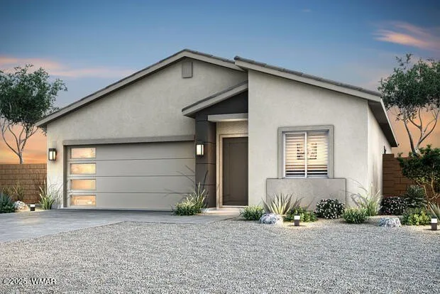 This 1,329 sq ft home offers a traditional family floor plan with smart design throughout. The primary bedroom suite features a walk-in closet and private bathroom, while two additional bedrooms share a second full bath. The open-concept great room connects to a generous dining room, creating over 350 sq ft of combined living and entertaining space. The kitchen includes a walk-in pantry for ample storage, and a separate utility room keeps laundry tucked away. Outdoor living includes a covered front porch and a covered back patio for year-round enjoyment. The attached 2-car garage provides parking and storage, with interior access through the foyer. Located in Show Low Bluff, offering convenient access to schools, shopping, and recreation. This is a home to be built. Buyer will purchase lot and contract with builder for the build. Any changes to this floor plan, may require additional cha...