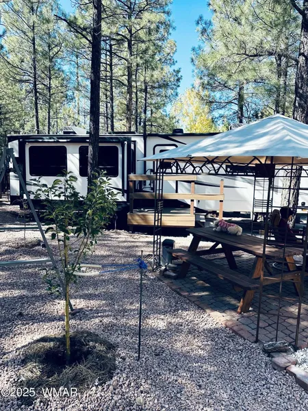 Nestled at approximately 6,500 feet in elevation, this owned lot offers the perfect retreat in a planned community of park models and RVs. Enjoy the fresh mountain air, the soothing sound of whispering pines, and the welcoming spirit of a beautiful, friendly neighborhood. With land ownership, you can relax and make the most of your space year round, no lot rent, no limits on your mountain lifestyle! This lot is being offered with a stunning 2024 Grand Design RV, thoughtfully set up and ready for you to move right in. Bring up what you need and start enjoying all four seasons in the cool pines. Your perfect mountain getaway awaits!