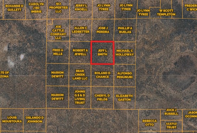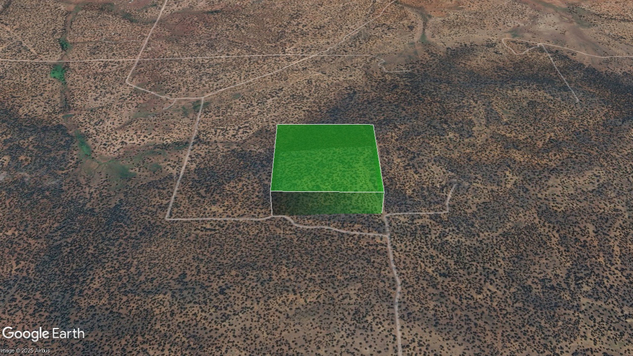 Coordinates: NW corner: 34.3852, -109.8923 NE corner: 34.3852, -109.888 (ROAD) SW corner: 34.3816, -109.8923 SE corner: 34.3816, -109.8879 (ROAD)