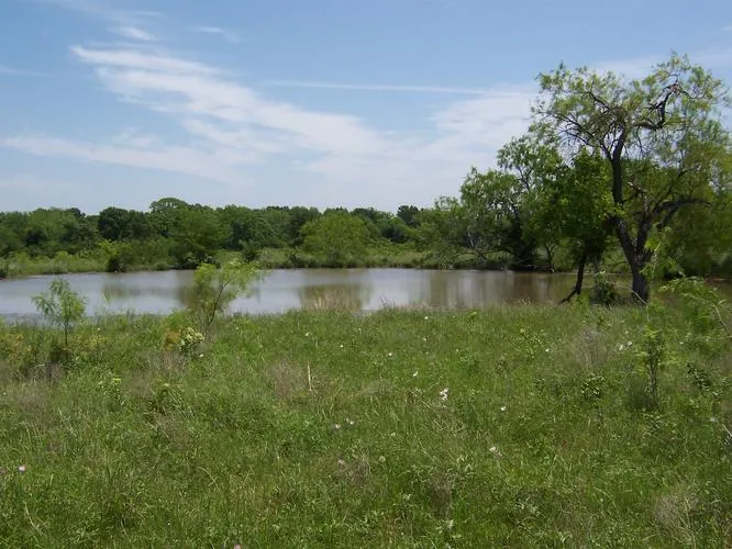 Property features variety of terain including rolling hill to bottomland area bordering a creek. Pasture is in Coastal and common bermudagrass. Pasture currently being utilized for cattle production. Some scattered native pecans with a variety of post oak and elm trees. One farm pond near center of property. Fenced on all sides. Some deer seen on property. Potential homesite with view overlooking bottomland area of the property.
