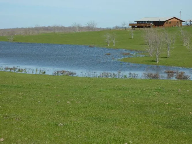 Weekend party-recreation ranch! 457 rolling acres, 1 hour south of Dallas near Chatfield, Tx. Fantastic fishing and hunting. 7-acre stocked lake, 9 ponds; deer; hogs; waterfowl hunting; 1980SF camp house with 3BR, 2BA, huge kitchen and game room. Living area with fireplace. Outdoor deck overlooking lake/countryside from hilltop setting. Sells furnished. Area for large lake. 60x40 equipment barn. Excellent grasses, Tipton85 Bermuda for hay/cattle. Set of pens and hay storage. Outdoor covered cook shack with BBQ pit and fish fryer.