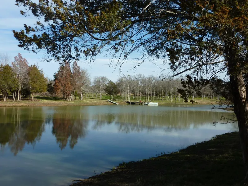 Mother Nature Getaway on 124 treed acres south of Kerens. Custom home overlooking 3-4 acre fishing lake with pier. Home has open floor plan, granite counters and island in kitchen and tall vaulted ceiling. So much moredetached sunroom, outdoor kitchen/entertaining area, hot tub and covered porches to relax and watch the deer, ducks and other wildlife. Storage/workshop barn with large guest apartment and equipment barn. Exciting riding trails throughout the woods; 3 ponds; improvements not visible from road. Pipe security gate.
