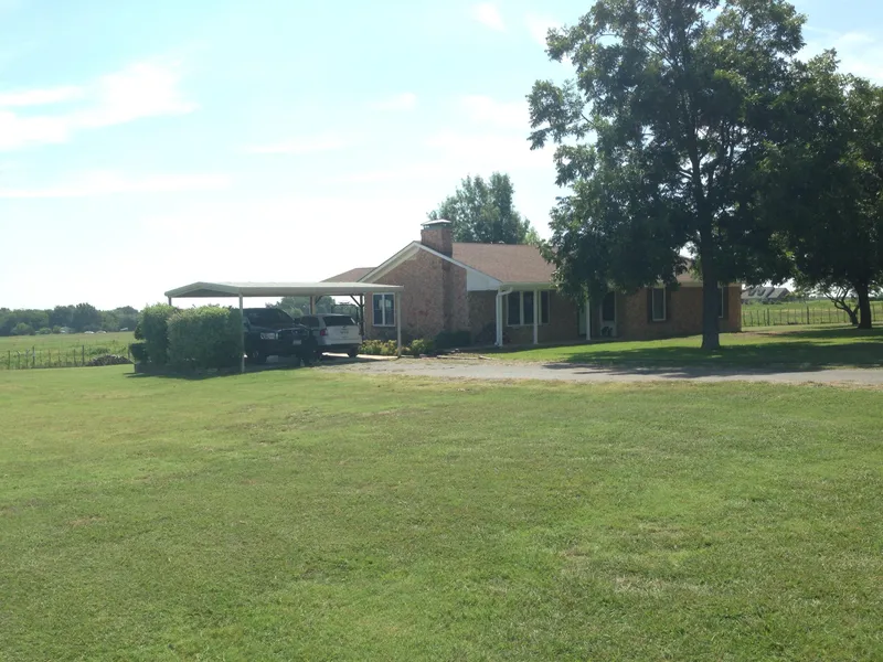 Beautiful brick home with lots of extras and amazing shop on 10.5 acres for sale! 1493 sq. ft., 3 bedroom, 2 full baths, every window in the house is brand new, excellent roof, large 2 car pipe carport on slab, 415 sq. ft. covered deck with ceiling fans and lights. Master bedroom has full bath and walk in closet. Kitchen has all custom cabinets. Flooring is concrete in living room, wood laminate in kitchen and dining area, carpet in bedrooms, tile in bathrooms and laundry room. Beautiful working brick fireplace that takes wood or gas. Shop is 1014 sq. ft. and is only a few years old. One half of the shop is fully insulated and has rustic ceiling and walls with trim, ceiling fans, fluorescent lights, lots of outlets and running water all of which was done less than a year ago. The other half of shop has lights and plenty of outlets as well. Gated entrance on paved FM road. Large fenc...