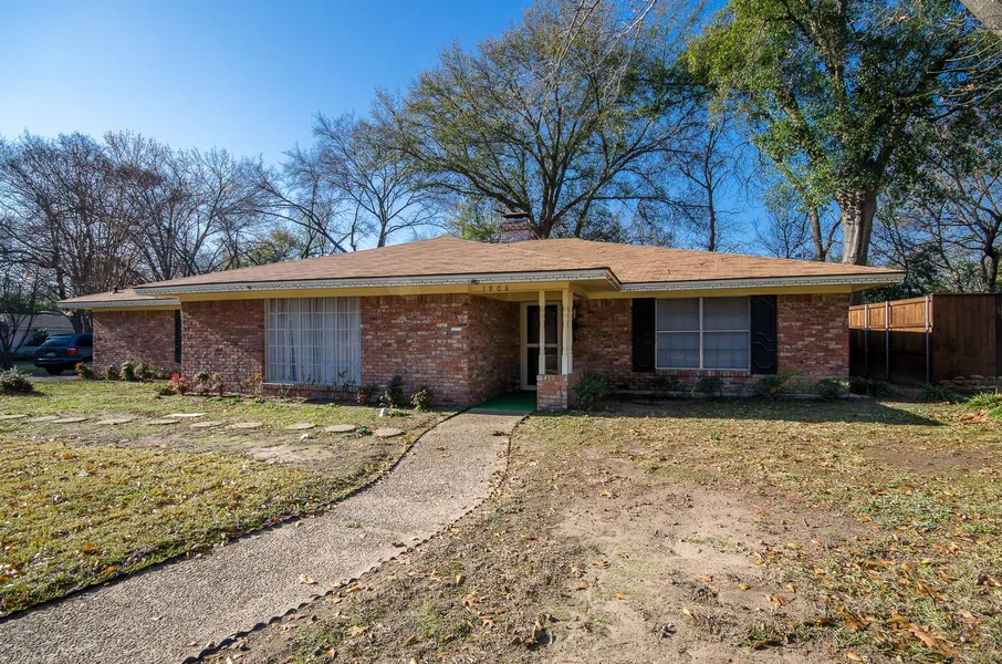 Lovely spacious home on treed lot in wonderful neighborhood! Home features spacious rooms, formal den, dining room, three full baths & large living area with vaulted ceilings, exposed beams and brick gas fireplace. Full sized utility room and tons of cabinet space in kitchen. Large covered back porch with access from living room and master bedroom. Nice storage shed that is fenced with chain link & steps down to the creek that backs the property.