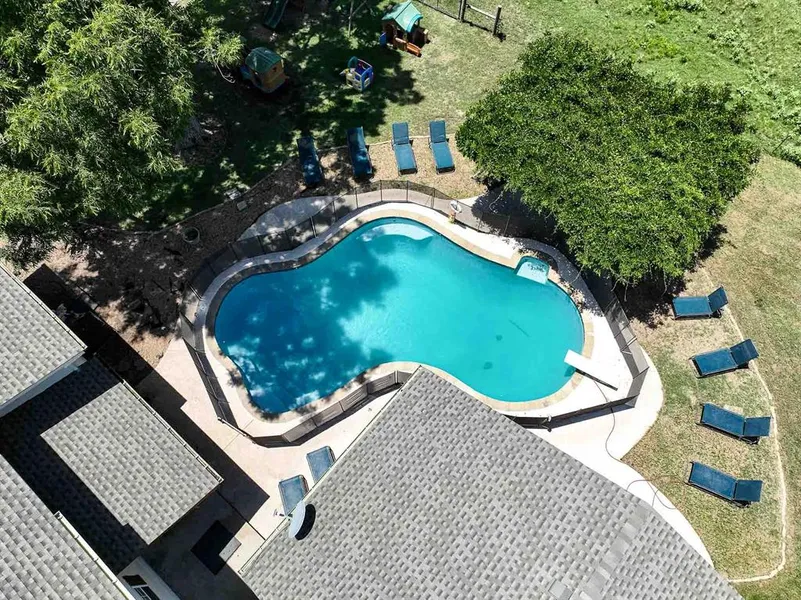 Discover this stunning 4-bedroom, 3-bathroom residence situated on an expansive 3.62-acre lot. This 2-story home boasts 2,504 sq ft of beautifully appointed living space, complemented by an additional 621 sq ft poolhouse, perfect for entertaining or could be made into an in-law suite. Inside, you'll be greeted by an open concept layout, white kitchen featuring double ovens, large island, & rustic wood beams in both kitchen & living areas, exuding timeless farmhouse charm. The large inground pool with diving board creates an inviting outdoor retreat with plenty of decking & a pergola overlooking the pastureland. The main home includes several bonus rooms, offering versatile spaces to fit your lifestyle. The huge laundry room is ideal for handling everyday chores with ease. An oversized 2-car garage provides ample storage space for vehicles & equipment. OUTSIDE CITY LIMITS, LOW TAXES! Recent Updates: Poolhouse bathroom 2022, roof 2023, pool resurfaced with hydrazzo finish in 2021.