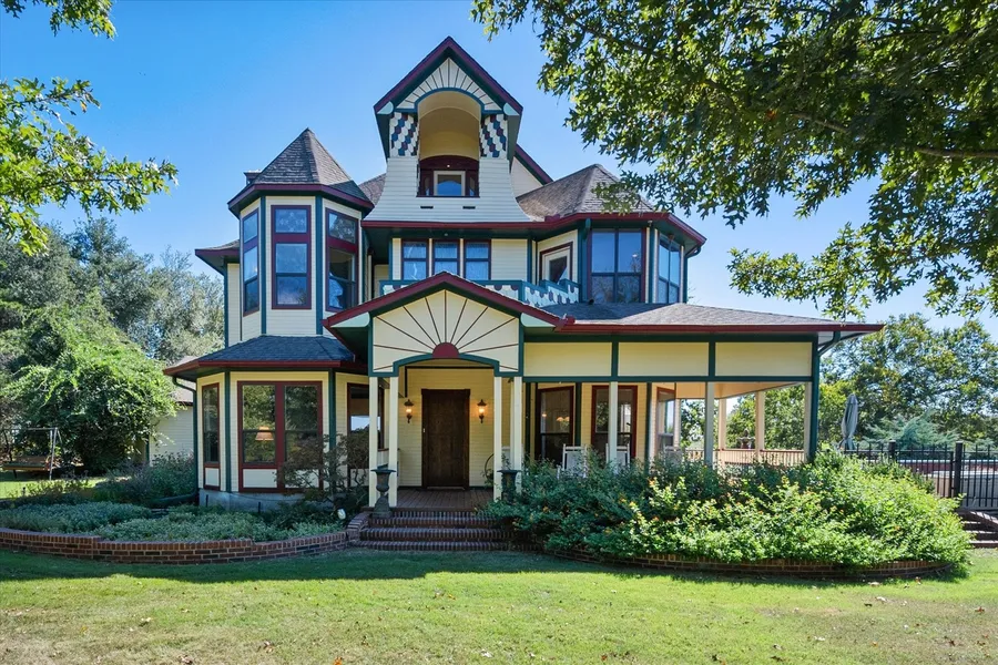 Experience timeless elegance in this exquisite 3-story estate, nestled on +-36 acres offering sweeping panoramic views and breathtaking sunsets. This beautiful residence epitomizes Victorian architecture, featuring high ceilings, stained glass windows, and stunning hardwood flooring throughout. The exterior showcases a charming wrap-around porch along with four inviting outdoor patios and decks. Inside, the chef’s kitchen seamlessly flows into a grand dining room, perfect for entertaining. The primary suite boasts a sitting area and an expansive walk-in closet, while all three bedrooms offer picturesque views of the surrounding greenery, saltwater pool and spa, well-maintained gardens, and the greenhouse. Additionally, a 1,800 sq. ft. guest house (duplex) provides two separate units, each with a living room, kitchen, bedroom, and bath. The property also includes a 30x40 storage barn, a 25x20 enclosed boat shed, a 2-car attached garage, and a 2-car detached garage. 7.6 KW array keeps electric bill down.