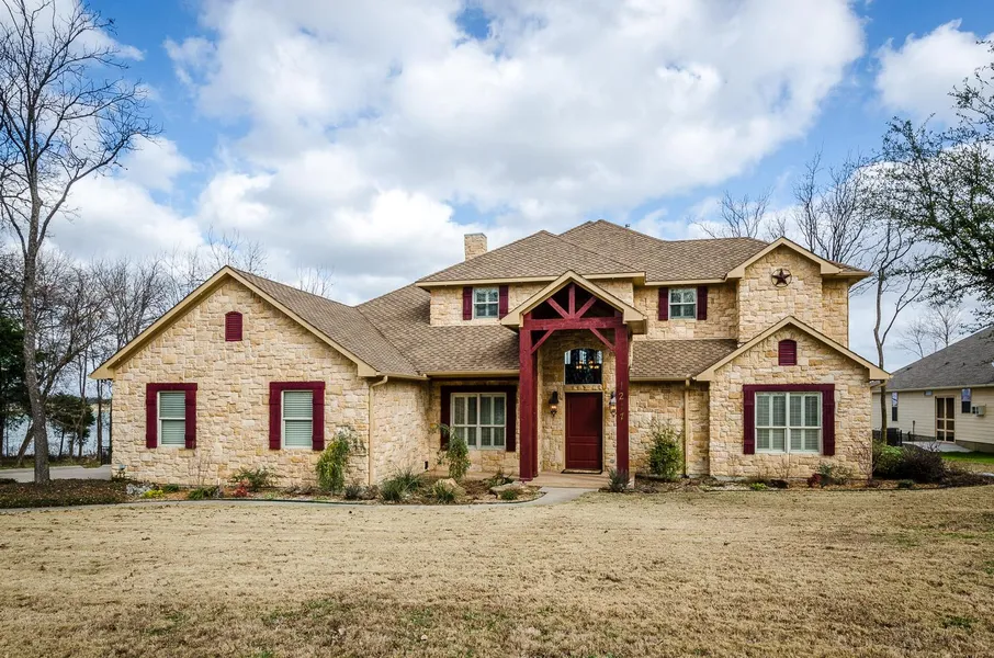Beautifully designed and finely executed, this 2-story waterfront lake home features a living area with soaring ceilings, a floor to ceiling stone fireplace & wall of windows overlooking the lake. The stunning kitchen with granite, built-in hutch area, large island and see-thru area to living room is a Chef's dream come true! With its 5 bedrooms, study with built-in shelves, 4 full baths & 1 half bath in the oversized utility room there is room for everyone! Gorgeous master with attached sitting room that includes a fireplace and a bath that is every woman's dream. Landscaped backyard with iron fencing, rock fire pit, dog run & 2-story boathouse with storage, sink, sun deck, double boat lift & sweeping views!