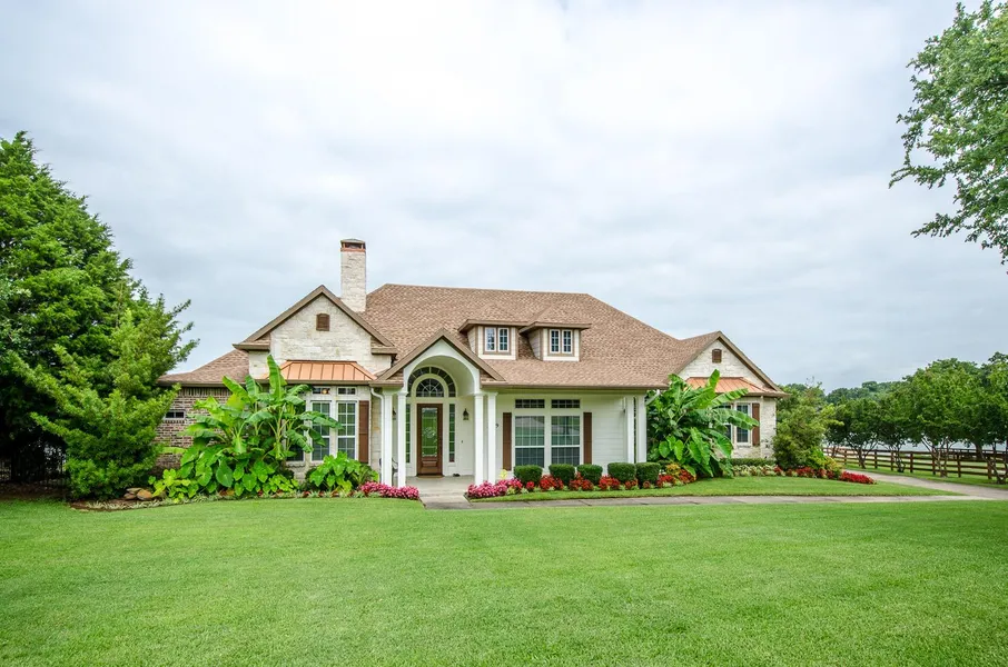 This breathtaking three bedroom, three-and-a-half-bath home is situated on 1.06 acres & spans 4,024 sq feet. The flowing floor plan boasts a formal dining room, office, living room with 3-tier tray ceiling, stone gas fireplace & a Bose surround sound system; breakfast area, stunning kitchen with a Viking 6-burner gas cooktop, double ovens, trash compactor, granite and custom cabinets. The master suite features a tray ceiling, crown molding, private access to the 49 x 29 covered deck, lake views & an elegant oversized bath with jetted tub, separate tiled shower, his and her sink and one of the two on demand hot water heaters. An additional living room with wet bar is located on the second floor along with full bath & 1-bedroom. 3-car garage with one turned into a workshop that is heated & cooled, has hot & cold water & 220 amps. Open water views from the 170 feet of shoreline with steel retaining wall, sidewalk and oversized deep water boathouse with boat lift, jet ski lift, large storage closet and entertaining deck. Manicured backyard with garden area and scattered trees.