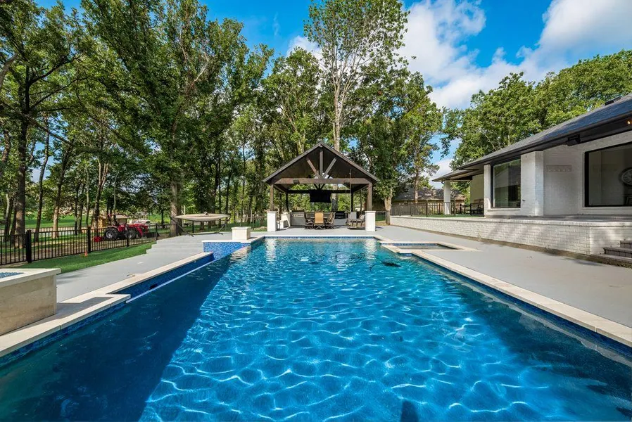 STUNNING Lakefront Remodel! This gorgeous 3 bedroom, 4 bathroom in Arrowhead has everything you are looking for in your dream lake home. 2,184 square feet of luxury upgrades such as custom tile work, high-end stainless steel built-ins, incredible lighting, modern-farmhouse barn doors, as well as, a custom 6-bunk, bunk room ensuring plenty of room for friends and family to visit you in your new lake retreat! The outdoor spaces do not disappoint either... 1.27 acres to spread out in the landscaped, resort-style, fenced-in gunite diving swimming pool with infinity edge and spa, the poolside cabana with built-in kitchen, in-ground trampoline and the TREX boathouse with 2 boat and 2 jet-ski lifts all nestled under mature shade trees. As a bonus, fresh St. Augustine sod was just laid out! Don't miss out, Summer is HOT and 414 Sundance is SO cool!