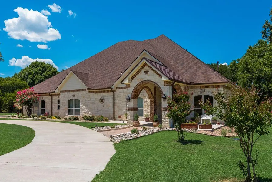 This Waterfront Home is a True Lake Side Dream! The luxury starts with your circle drive framed by the manicured lawn; inside is a formal entry way leading to the open living plan. This kitchen includes a huge island, gas stove, custom cabinetry, spice rack, granite, two sink areas and high end stainless steel appliances including ice maker and additional freezer. The master suite features fireplace, soaring ceilings, en-suite bath with vanity area and jetted tub. This home was made for entertaining; friends and family can enjoy the wet bar in the game room, the pool, covered back porch, stellar views from the boathouse (with boat and jet ski lifts) and gorgeous treed lawn, as well as private access to Richland Chambers Lake! Plenty of room to sleep the grand kids because you'll have 3 additional bedrooms in the main house AND a separate guest house with 2 bedrooms, a bath, living area & kitchen with laundry room! This space is perfect for mother in law or multi generational living.