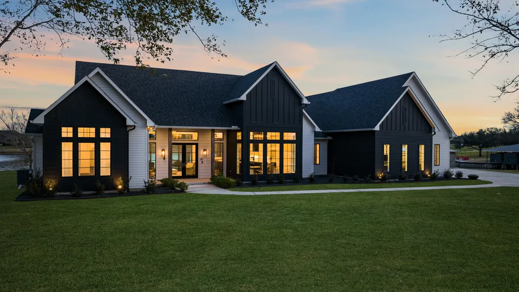 Welcome to your lakefront dream with this modern lakefront home in a small gated community located on Richland Chambers Lake. From the moment you enter this stunning home, the lake is on full display through the soaring windows & doors that span the entire living space. The open concept living area features a cozy fireplace for chilly nights & the dining area flows right from the living into the kitchen. The kitchen features custom made cabinetry, modern open shelving, a massive granite topped island with seating and additional storage, plus a farmhouse sink overlooking the water! The primary suite features a private lakefront patio with an ensuite bathroom with a fully glass enclosed shower room with a garden tub for spa-like experience, custom cabinetry and walk-in closet with laundry chute and an additional storage closet. Bedroom 2 features a large walk-in closet and bedroom 3 offers...