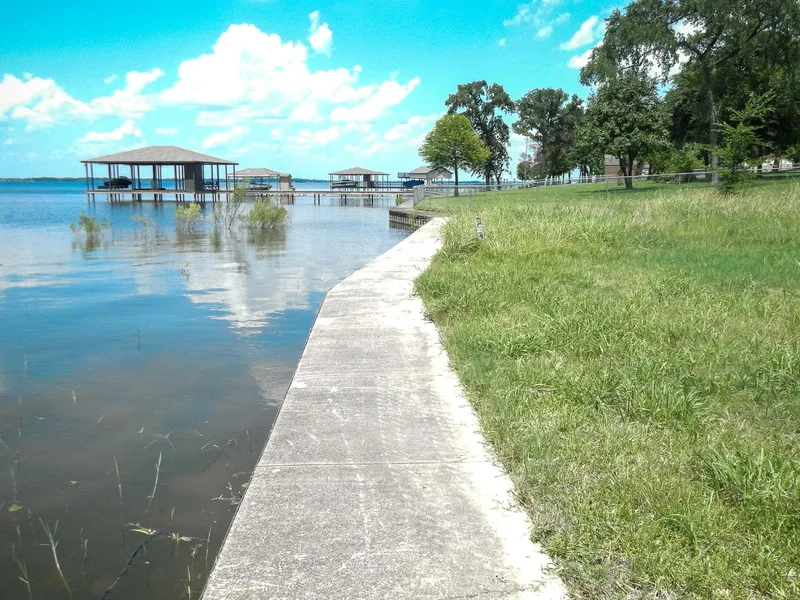 Beautiful gently sloped water front lot on south side of Richland Chambers Lake! Come build your dream home on this treed waterfront lot with open water views; retaining wall and sidewalk already in place. Rustling Oaks has boat ramp available to property owners and requires site built homes.