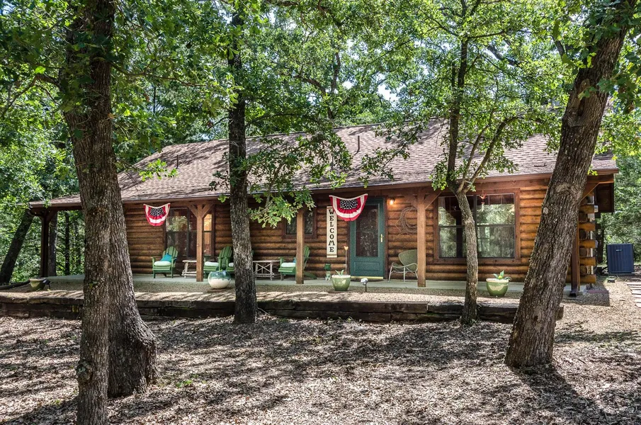 Enjoy peaceful living on this beautiful rustic and secluded log home sitting on a 10 acre lot. This lovely home features an open living concept living area with vaulted ceiling, freestanding wood burning fireplace, dining area and kitchen with stainless steel appliances and breakfast bar. Custom two bedroom, two bath with 8x6 walk-in closets. Also featured, utility room and 30x21 detached 2-car garage with extra room for work space. Front and back porch with outdoor fire pit. Just minutes from Richland Chambers Lake to enjoy the private boat ramp Hout Bay has to offer.