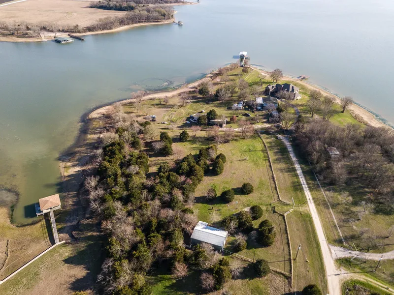 Beautiful 4.83 acres with approximately 393 feet of shoreline. Stunning water views on a large protected cove. This property offers plenty of possibilities! Completely fenced with open areas and heavily wooded areas. Has a 600 sqft metal building that has been turned into a efficiency apartment with full bath, partial kitchen and living, dining, bedroom area. Huge RV storage area with large overhead door or a place to storage all your lake toys, also includes a loft area. Quick access to Hwy 287 and Fm 309. This is wonderful property to build your dream home on or use as a weekend get-away. This property won't last long!