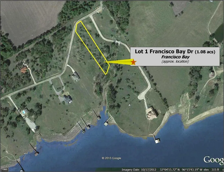 Research Parcel InformationHwy 31 E to FM 1393, take a RT, follow down to turn off to Francisco Bay on RT. Follow into subdivision. Lot on LFT, SOP
