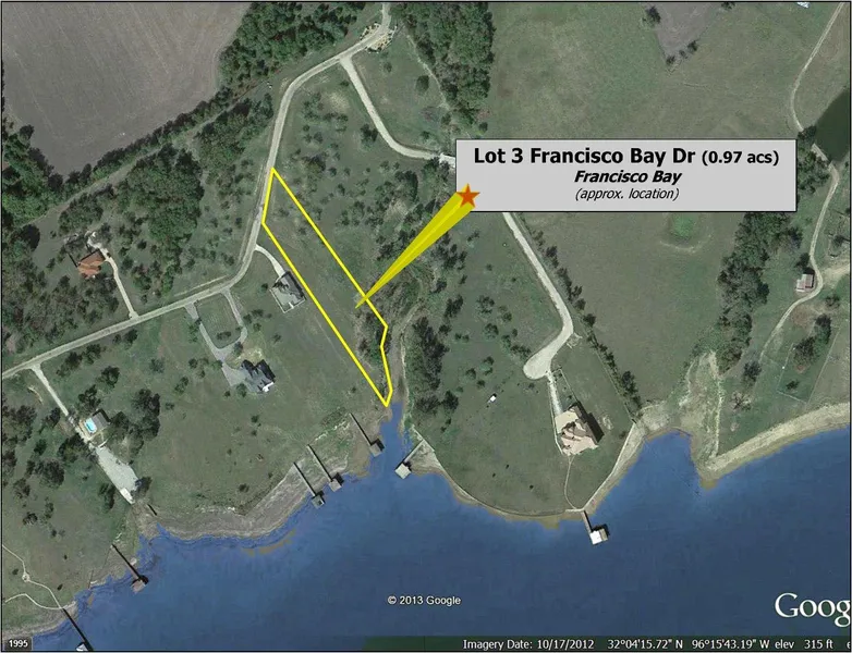 Research Parcel InformationHwy 31 E to FM 1393, take a RT, follow down to turn off to Francisco Bay on RT. Follow into subdivision. Lot on LFT, SOP
